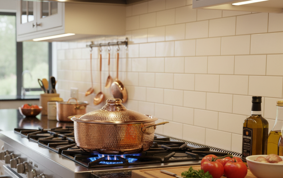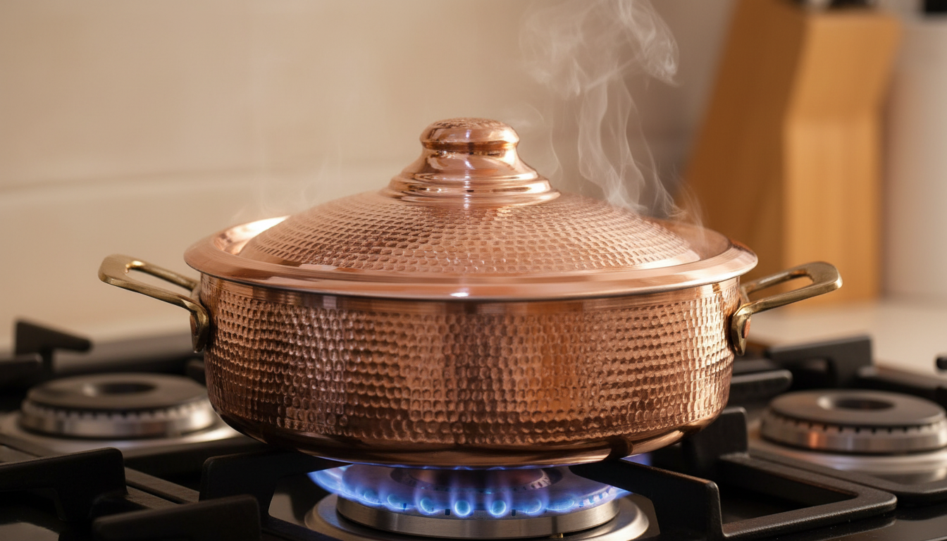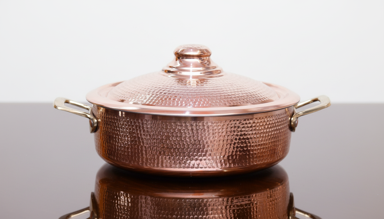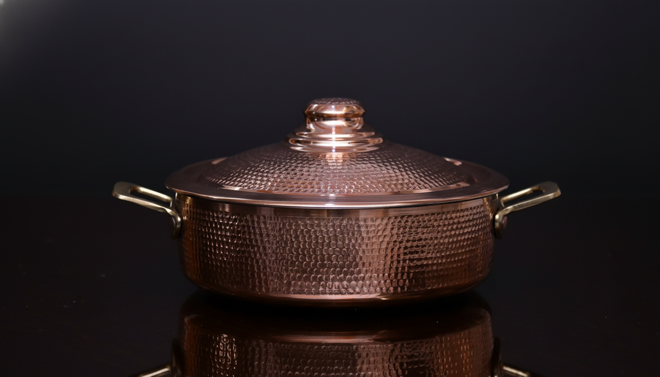 Each pot is carefully handmade by skilled artisans, giving it a unique hammered finish that reflects light beautifully. Beyond its visual appeal, copper is known for its exceptional heat conductivity, allowing for precise and even cooking.