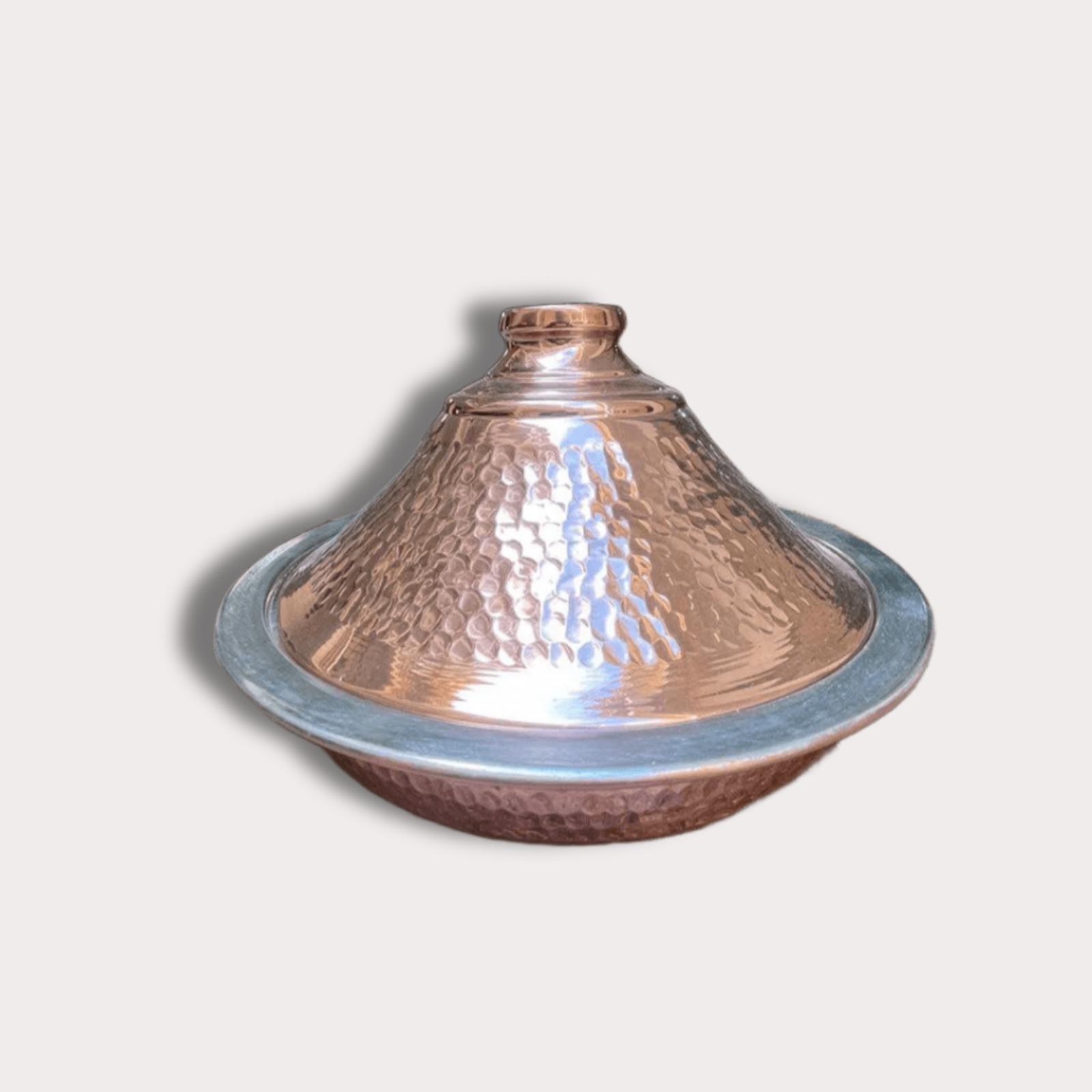 Bring the soul of Moroccan cuisine into your home with this handcrafted hammered copper tajine. Featuring the iconic conical lid and a beautifully textured base, this piece is designed for slow cooking, rich flavors, and stunning presentation.