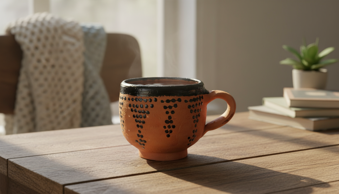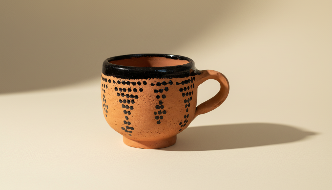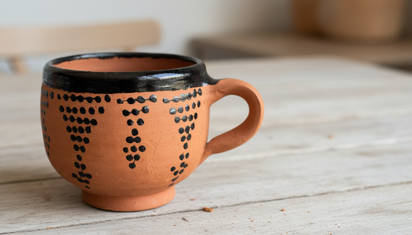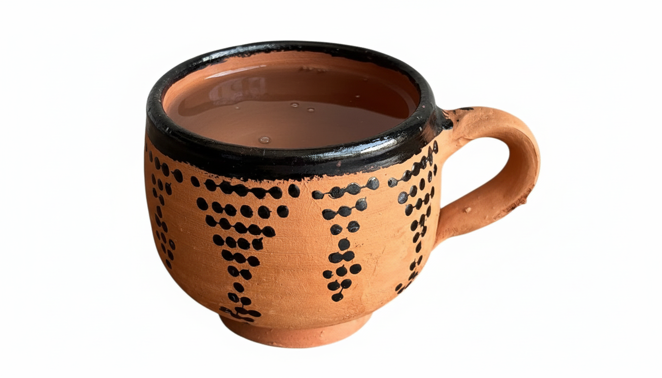 Enjoy your daily coffee or tea with a touch of Moroccan authenticity. This handmade clay cup is crafted using traditional pottery techniques and decorated with simple, rustic black patterns that highlight its natural beauty.