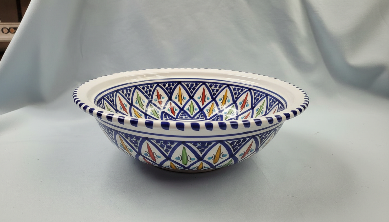 Add a touch of Moroccan tradition to your table with this beautifully handcrafted ceramic soup bowl. Featuring vibrant hand-painted patterns in blue and earthy tones, this piece combines functionality with artistic expression.