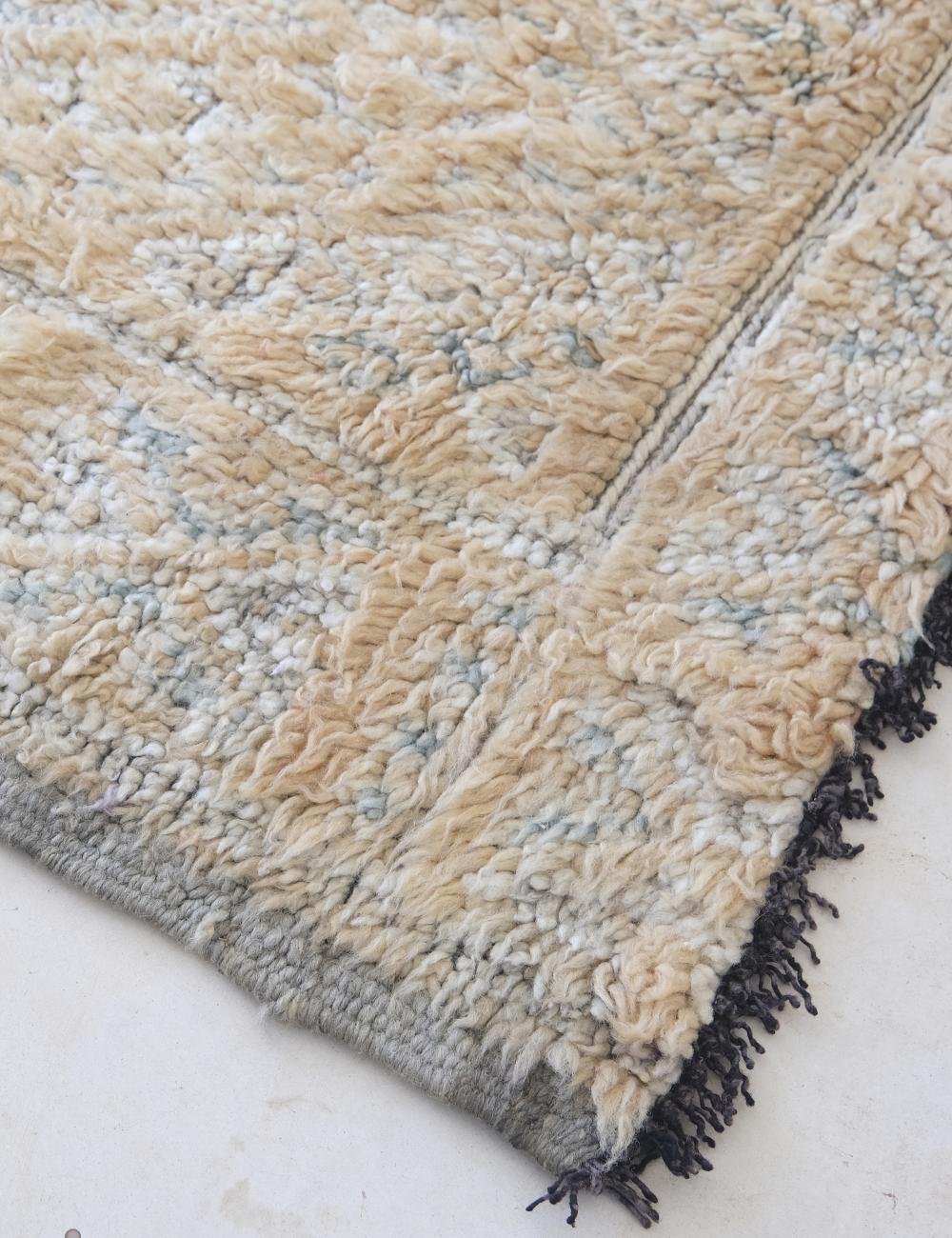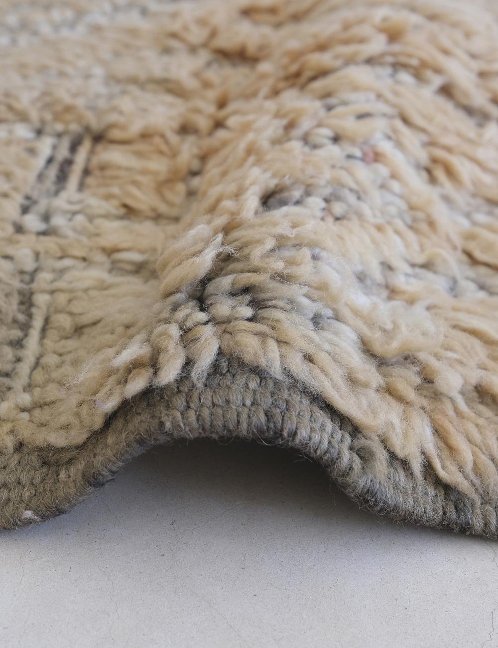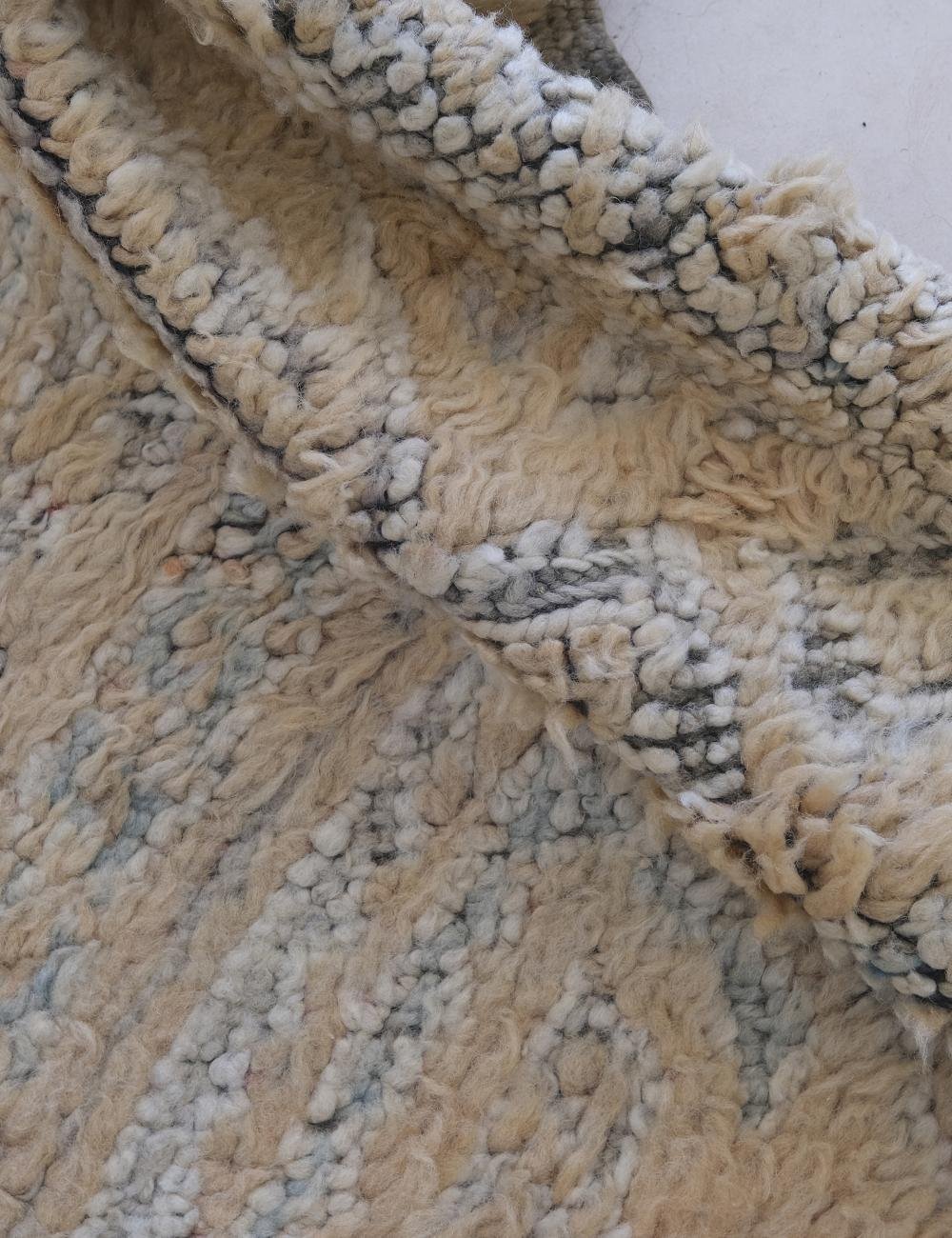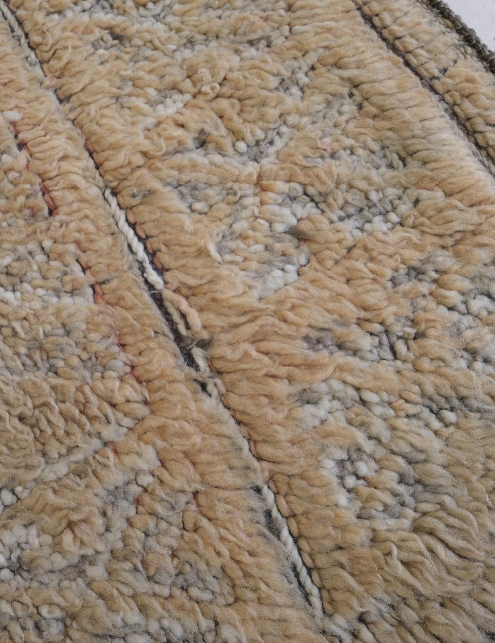 Handwoven in the Middle Atlas Mountains, this piece embodies understated luxury. Its minimalist geometric patterns, gently faded over time, create a calm and sophisticated atmosphere — perfect for modern, organic interiors.