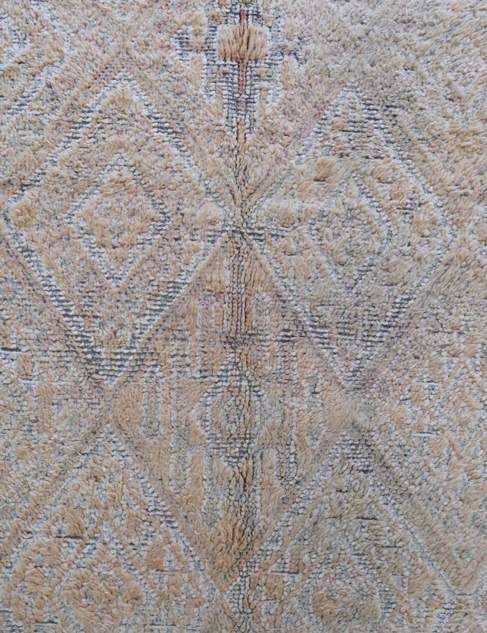 Elevate your interior with this refined vintage Moroccan rug, featuring a delicate blend of soft beige, faded blush, and subtle grey undertones.